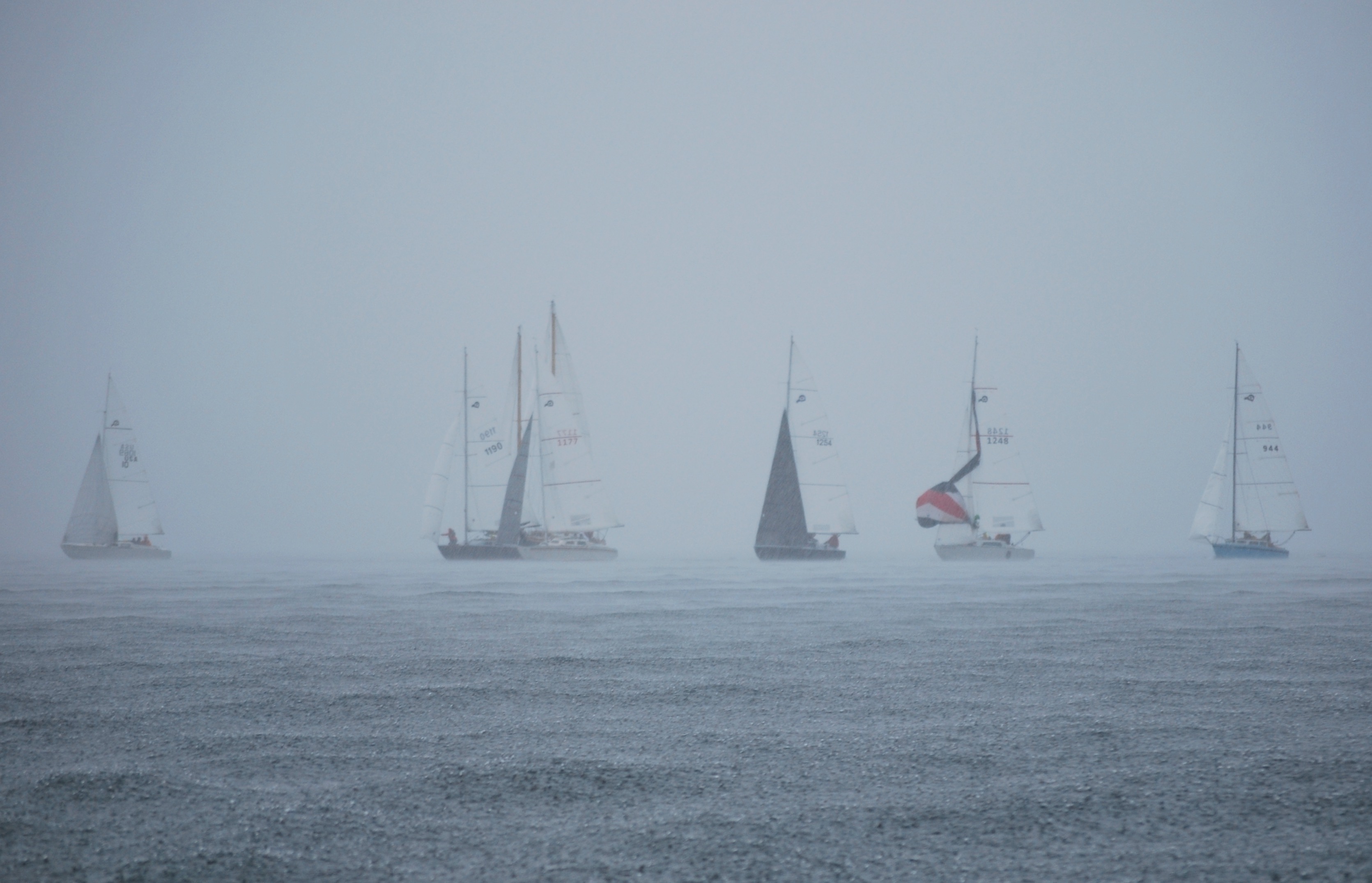 The fleet on Sunday in a total white out down pour.