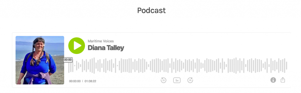 This is Maritime Voices – I’m your host Jim Heumann. In this interview I will be speaking with Diana Talley. Diana believes that she may hold the world’s record for throwing up at sea after getting pregnant on a 106- day engineless non-stop voyage from Panama to Port Townsend, in a boat without standing headroom.