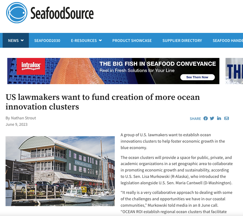 The ocean clusters will provide a space for public, private, and academic organizations in a set geographic area to collaborate in promoting economic growth and sustainability, according to U.S. Sen. Lisa Murkowski (R-Alaska), who introduced the legislation alongside U.S. Sen. Maria Cantwell (D-Washington)