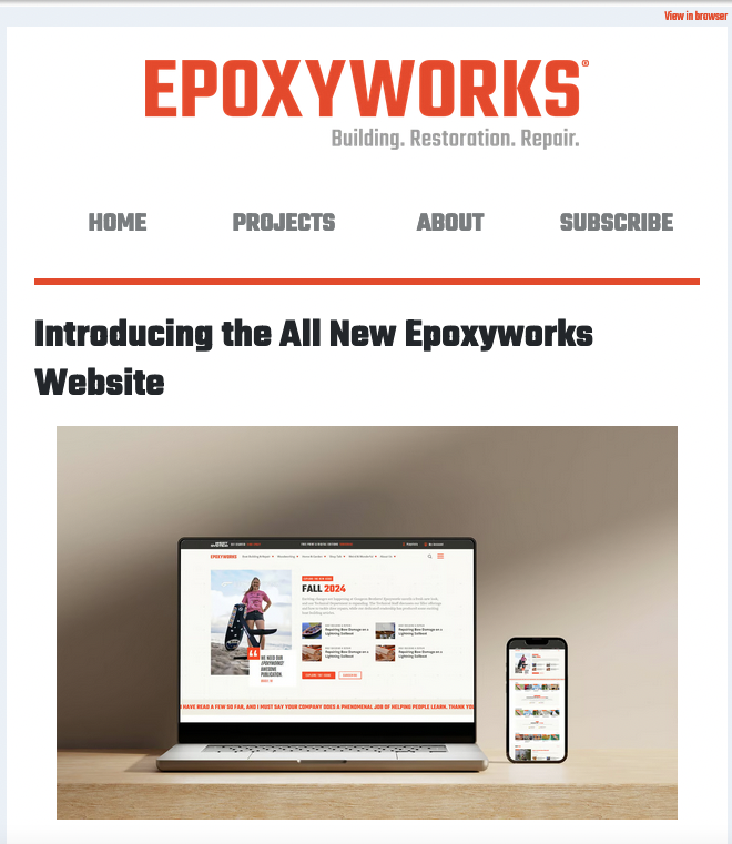 Epoxy Works is a magazine produced by WEST SYSTEM INC and features an array of projects and information related to the uses of epoxy. Education is a huge part of the company’s mission and this magazine is free and largely filled with user content. Click the image to access their new website/digital magazine.
